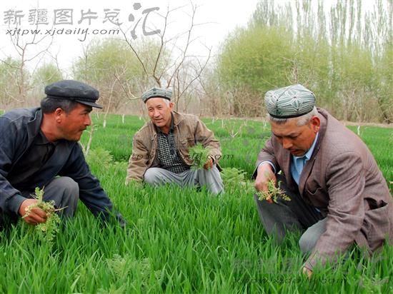 2013年4月1日,新疆喀什地区英吉沙县国税局驻村干部(右一、右二)与英也尔乡4村村民一起边劳动、边交谈。自“转变干部作风,服务群众活动”在英吉沙县开展以来,驻村干部自觉深入村民家中、田间地头,了解掌握村民家庭情况,积极协调帮助村民解决生活用水、用电、春耕施肥等难题。