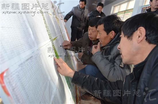 2014年1月7日,新疆生产建设兵团第五师86团园艺2连的职工,在查看2013年葡萄种植农资发放明细表。