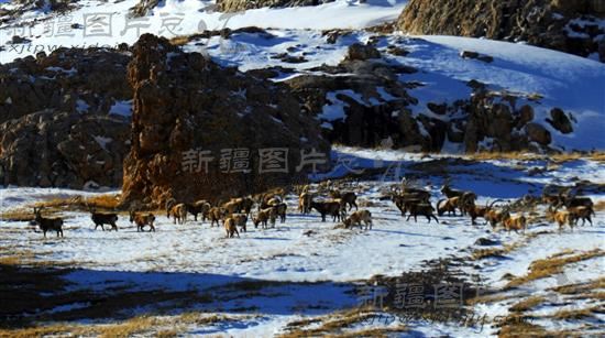 2013年4月4日,成群的北山羊在位于新疆巴音郭楞蒙古自治州和静县额勒再特乌鲁乡附近的大山里觅食。近年来,和静县加大野生动物保护宣传力度,为野生动物营造了良好的生存环境。入春以来,国家一类保护动物北山羊在天山深处大量出现。