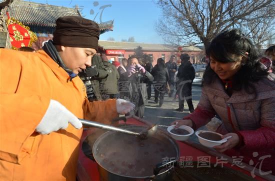 2014年1月8日是农历腊月初八,按照我国传统习俗,这天要喝“腊八粥”。当日,巴里坤县各族群众纷纷前往地藏寺,品尝寺庙里免费发放的“腊八粥”。