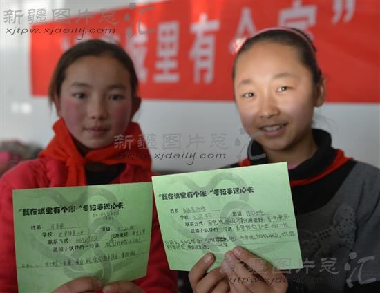 1月9日,汉族小学生马彦彤和哈萨克族小学生麦热吾叶提互换连心卡结对交友。