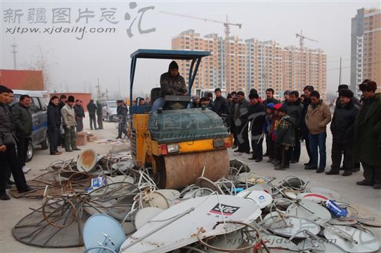 2014年1月9日,新疆喀什地区巴楚县开展对非法出版物和非法卫星电视地面接收设施集中销毁活动。