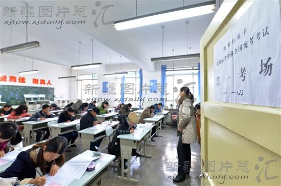 2014年1月11日,新闻记者资格全国统一考试新疆哈密考点,考生在答卷。