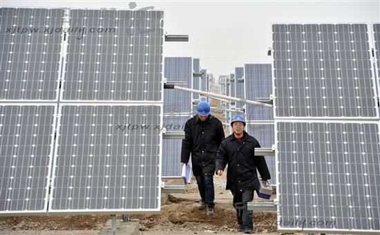 2013年3月13日,技术人员在对光伏发电设施进行维护。位于博乐边境经济合作区内的九州方圆博州新能源有限公司,2012年投资4亿元建设占地1500亩的一期光伏发电工程,实现当年开工当年发电。目前已发电700万千瓦时,实现利税700万元。今年4月,二期工程破土动工。