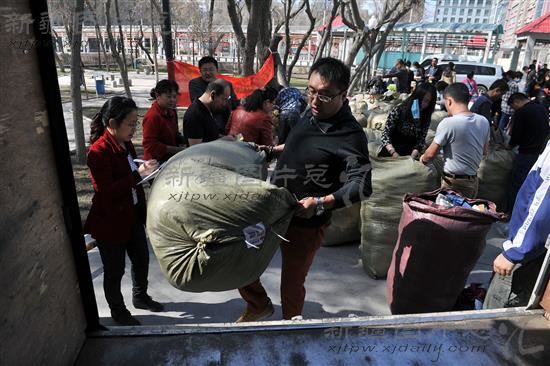 2013年3月31日,志愿者将社会各界捐赠来的衣物分拣后装车运往阿拉尔市、叶城县等地。当日,拥有600多人的乌鲁木齐爱心社团组织“点亮爱心”的志愿者将万余捐赠来的干净衣物分拣为春夏秋冬四季衣物封装,发往阿拉尔市、叶城县的一些偏远乡镇,为需要爱心援助的人士献上温暖。