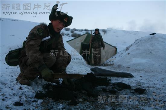 12月28日,战士在准备夜晚取暖用的煤炭。