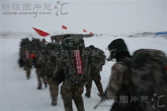 2013年12月25日,阿拉套山南麓戈壁达坂上,蜿蜒前行的数公里行军队伍,时而发出响彻云霄的拉歌声,时而又如猛虎下山般冲刺奔袭。这是驻新疆博尔塔拉某部队野营拉练的一幕。六天五夜的野营拉练中,官兵们经受住了体能、作风、意志、品质的综合检验,圆满完成了各项训练任务。