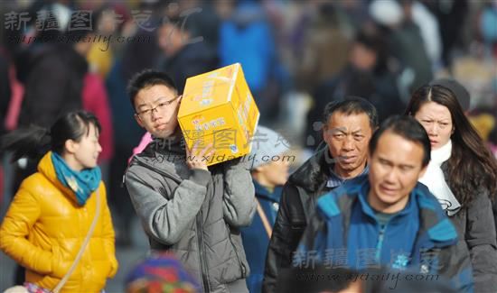 2014年1月25日,新疆库尔勒市,熙熙攘攘的采购年货的人流。