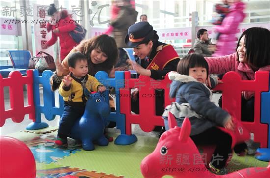 春运期间,乌鲁木齐站对“重点旅客服务区”进行扩容改造,新增“古丽爱心岗”,开辟了“母婴专区”、“儿童乐园”等,为出行旅客提供便利和舒心。