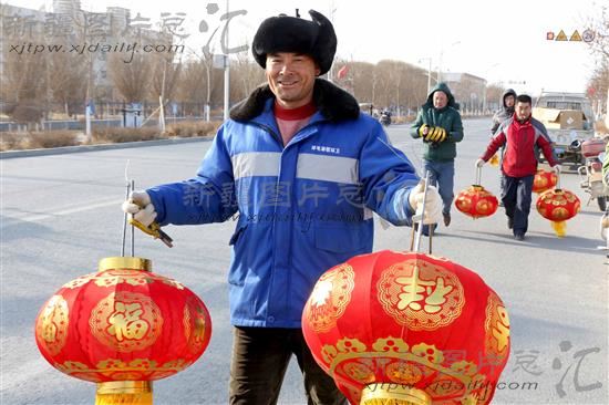 新春将至,新疆伊吾县淖毛湖镇街头挂满了红灯笼,为西部小镇增添了浓浓的节日气氛。