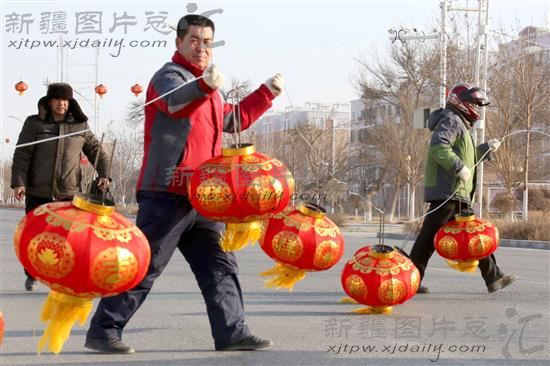 新春将至,新疆伊吾县淖毛湖镇街头挂满了红灯笼,为西部小镇增添了浓浓的节日气氛。
