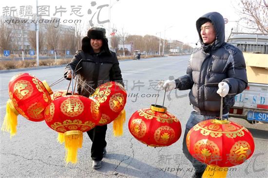 新春将至,新疆伊吾县淖毛湖镇街头挂满了红灯笼,为西部小镇增添了浓浓的节日气氛。