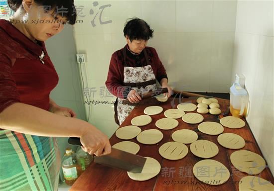 2014年1月26日,哈密市西河区街道东菜园村,村民在制作香豆油饼。
