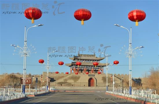 关键字:迎新春 春节、红灯笼 中国红 新疆 巴里坤哈萨克自治县 城市景观 街道