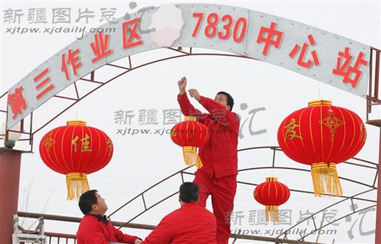 春节临近,新疆克拉玛依油田各族员工布置井站,贴春联、挂红灯、包饺子,迎接新年到来。