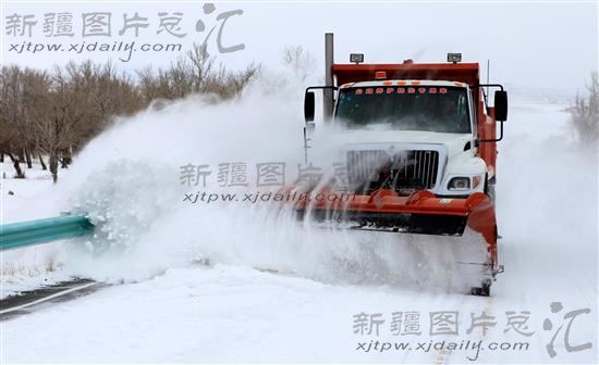 2014年1月30日,新疆阿勒泰地区布尔津县,清雪车辆在217线国道清雪。