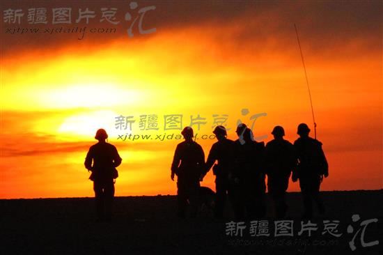 2014年1月30日,驻守在西北边陲的新疆军区某边防团老爷庙边防连的官兵,迎着朝阳去巡逻。