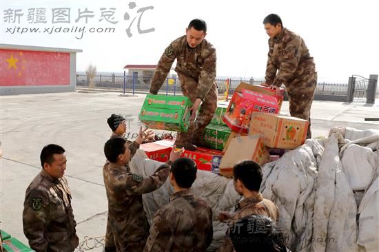 新春将至,新疆军区将水果、蔬菜、肉品、饮料等年货送往边关哨所,让戍守在边防的官兵过一个温暖欢乐的春节。