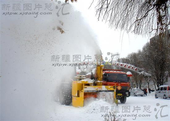 2014年2月4日,清雪机械在裕民县城区道路上清除积雪。