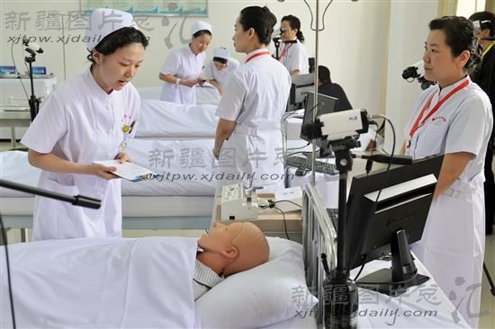2013年5月25日,参加护理比赛组护士在新疆医科大学临床教学楼进行比赛。当日,2013第三届新疆医护技能大赛在新疆医科大学临床教学楼举行,来自全疆72家医院的79支队伍的医生、护士近700人分别参加了医师部分的5项比赛和护理部分的5项比赛,竞赛按照三级医院、二级医院、一级医院三个组别进行,此次比赛将进行两天。