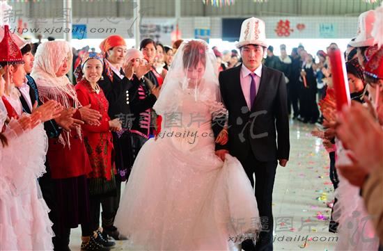 2014年2月4日,6位柯尔克孜族外出务工青年在福建省泉州市和诚鞋业有限公司举行集体婚礼。