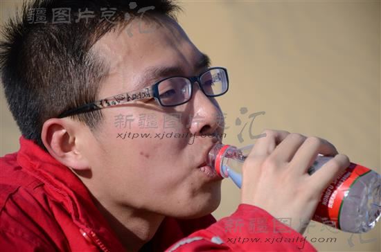 由于长时间处于脱水状态,只能小口喝水。摄于1月31日