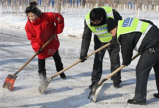 克拉玛依绿丝带志愿者清扫冰雪