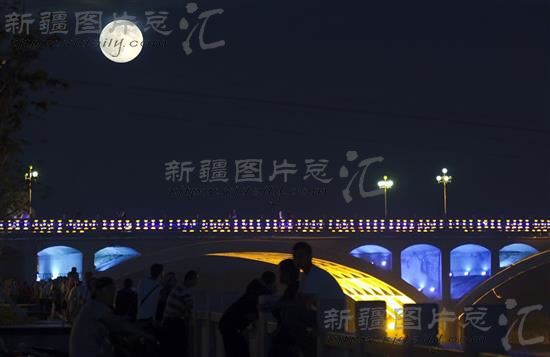 2013年6月23日傍晚,伊宁市市民刘女士带着孩子来到伊犁河大桥赏月。据了解,6月23日正好是农历十六日,当晚的月亮是2013年度最大最圆的,许多市民在傍晚时分都赶到伊犁河大桥来欣赏这一美景。