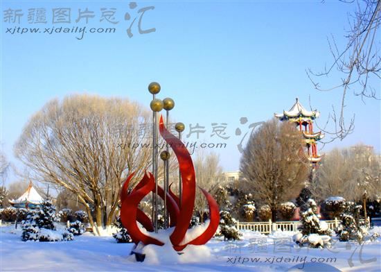 2014年2月11日笔者拍摄的裕民县人民公园冬日美景。