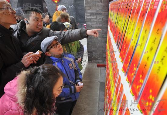 2014年2月14日,市民在猜灯谜。