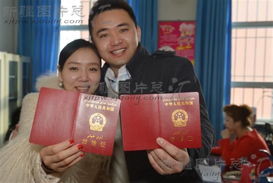 2014年2月14日,来自南京的情侣张灏和文豆,乘车3200余公里,于当日赶到新郎张灏的户籍所在地新疆巴里坤哈萨克自治县民政局,领取到当日颁发的第一张结婚证。2014年2月14日,谐音“爱你一世爱一世”,中国传统的元宵节适逢西方情人节,新人扎堆领取结婚证。