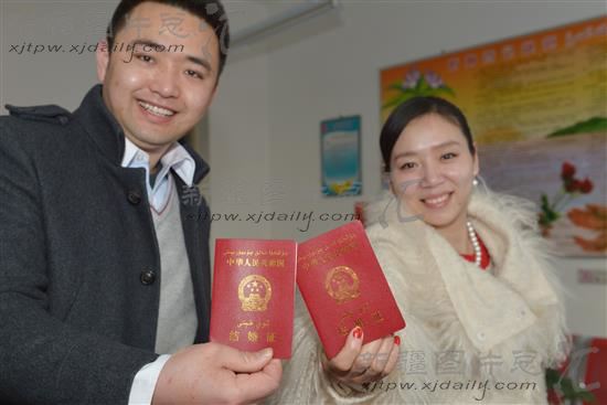 2014年2月14日,来自南京的张灏和文豆领取到了结婚证。