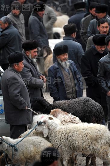 2014年2月16日,新疆库尔勒市活畜市场买交易场景。