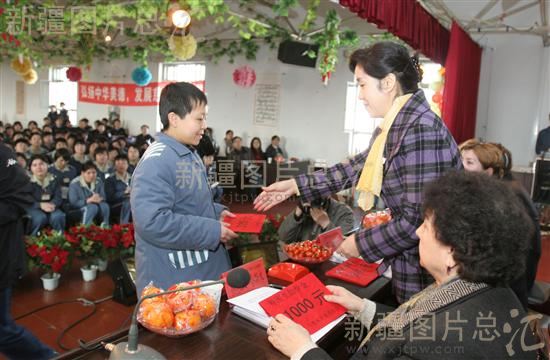 2008年4月8日,新疆女子监狱与乌鲁木齐慈善总会为服刑人员举办了一场爱心资助活动,7名特困服刑人员的9名子女每年将获得捐助320元,从小学至初中毕业。图为给服刑人员发放教育救助金。
