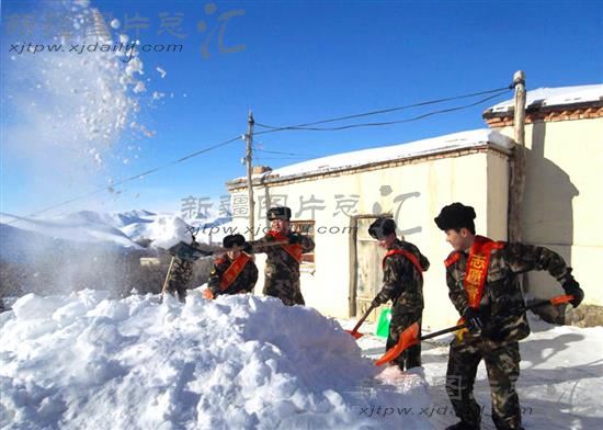 2014年2月18日,裕民县察汗托海公安边防派出所民警,在为辖区村队的孤寡老人清除房前屋后的积雪。