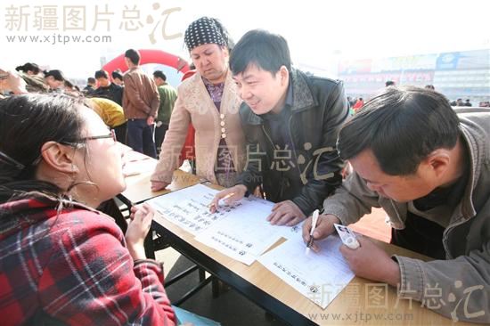 2008年4月1日,求职的青年在进行就业咨询。新疆乌鲁木齐市沙依巴克区在乌铁局乌鲁木齐火车站举办“进城务工,帮你解决”招聘会,118家用工企业提供了服务员、电工等1700多个岗位,共有510多人与用工单位达成了用工意向。