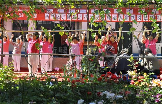 2013年6月4日,新疆伊犁哈萨克自治州伊宁县老年大学的离退休老干部们在县城西二区为群众表演《健身操》。最近,伊宁县老干局组织动员离退休老干部们积极参与县里举办的“‘团结之花’民族舞蹈大家跳”活动,充分展现了共建民族和谐一家亲的良好氛围。