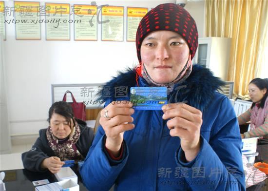 2月13日,新疆塔城地区裕民县阿勒腾也木勒乡江阿布拉克村村民努尔巴合提领到了自己的个人新型农牧区合作医疗卡。从去年年底开始,裕民县农牧区及时向农牧民发放新型农牧区合作医疗卡,在全县实现了一人一卡,新农合医疗“一卡通”方便了农牧民就医。
