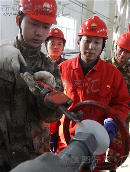 2月20日,一名老师正在指导退伍老兵采油技术要领。