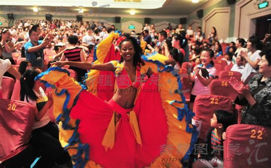 2013年7月21日,在第三届中国新疆国际民族舞蹈节上,来自毛里求斯国家舞蹈团的演员在表演舞剧《Nou Kiltir的诞生与发展》,当演员从观众席进场时,观众纷纷鼓掌欢迎。