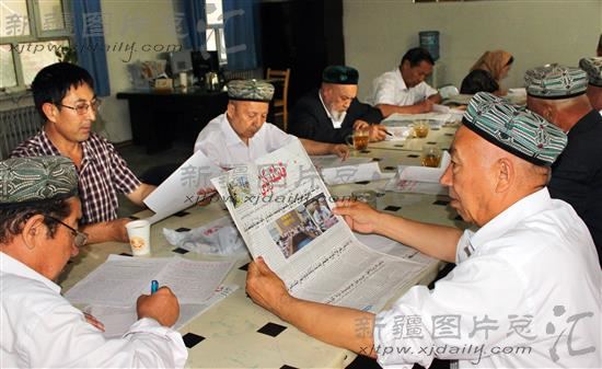 2013年7月10日,新疆喀什地区英吉沙县离退休干部集中学习、座谈讨论。7月以来,英吉沙县20余名县处级和乡科级离退休干部坚持不间断参加县委老干局组织的干部理论学习活动,认真学习研读中央、自治区党委关于维护新疆社会稳定和宗教管理的政策法规。