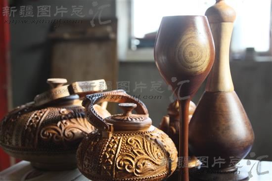 艾力·买合苏木向制作的手工艺品(摄于2014年2月19日)。