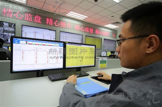 2014年2月22日,工作人员在哈郑特高压工程新疆哈密南换流站主控机前监控设备。