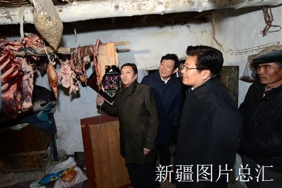 又向山里驱车近20公里,张春贤来到另一户牧民马合木提的家,周围的几户牧民赶了过来,大家一起围坐在温暖的炕头上,拉起了家常。张春贤说,今年冬天格外冷,降雪也比平常多,我们专程来看看大家,这个冬天有没有受冻,牲畜的饲草料够不够,还有什么困难?