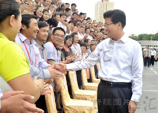 2013年8月30日,自治区残联第六次代表大会闭幕,中共中央政治局委员、自治区党委书记张春贤与参会代表亲切握手。