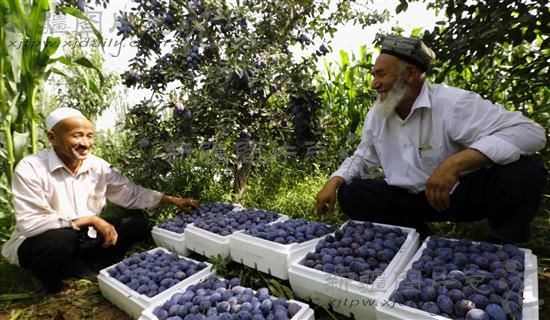 2013年8月23日,新疆喀什地区伽师县英买里乡拉依力克村农民将采摘的新梅装箱,准备空运广州。该县目前种植新梅12万亩,其中2万亩已进入盛果期,8月份将有2000吨新梅运往广州等内地的大超市。