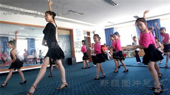 2013年8月6日,返乡大学生为社区孩子免费教拉丁舞。新疆阿克苏地区乌什县文化宫为返乡大学生提供社会实践平台。目前,该县有22名返乡大学生活跃在各乡镇、社区,为居民办实事,做好事。