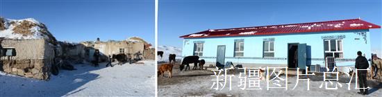 托里县库甫乡哈拉乔克冬牧场牧民马德尼亚提新旧住房的对比