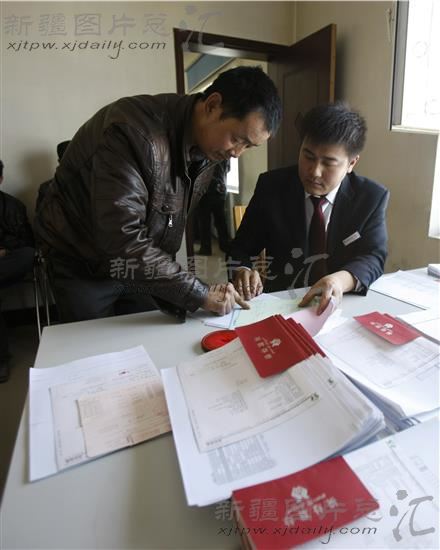 2014年2月27日,在焉耆回族自治县农村信用合作联社北大渠乡营业网点,该乡北大渠村的村民许润文在办理贷款手续。