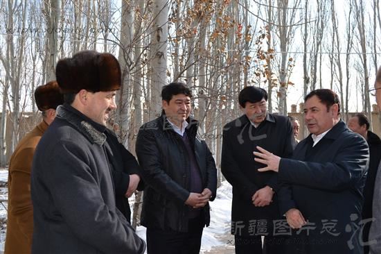 2014年2月26日,自治区党委常委肖开提·伊明等领导在精河县大河沿子镇呼和哈夏北村一清真寺了解情况。